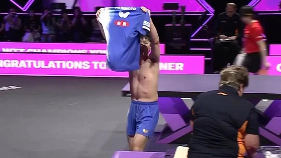 尽管王楚钦在第四局以11-9艰难扳回一城,并在第五局13-11险胜,但第六局张本智和在4-2领先时因腿部不适请求医疗暂停后,仍以11-4锁定胜局,总比分4-2夺冠。获胜后,他激动地脱掉球衣庆祝这场来之不易的胜利。